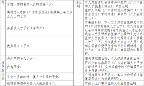 廣州市義務(wù)教育階段政策性照顧借讀生分類(lèi)一覽表