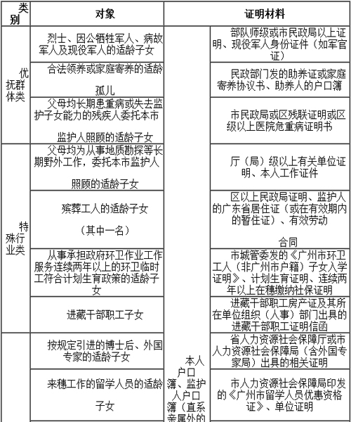 3、廣州市義務(wù)教育階段政策性照顧借讀生分類一覽表