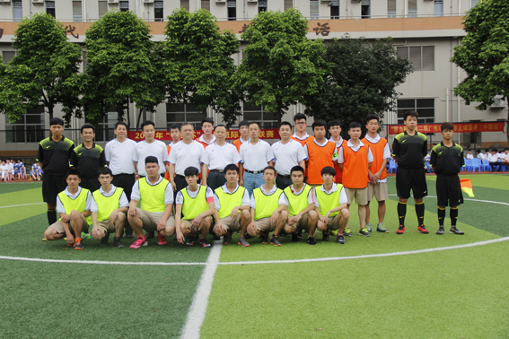 校園班際足球聯(lián)賽領(lǐng)導(dǎo)、裁判員、球員們合影