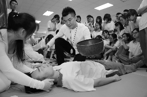 如此幫助考生緩解高考前的巨大壓力,學(xué)校也是煞費苦心。近日,廣大附中攜手楊氏頌缽團隊,采用聲音療法,帶給學(xué)生深度減壓體驗。