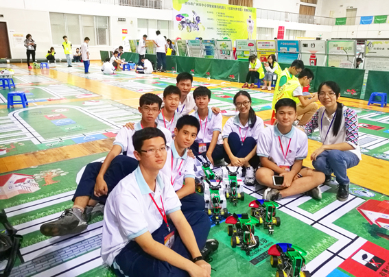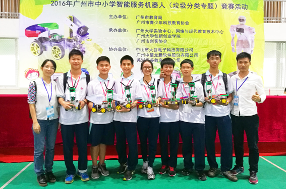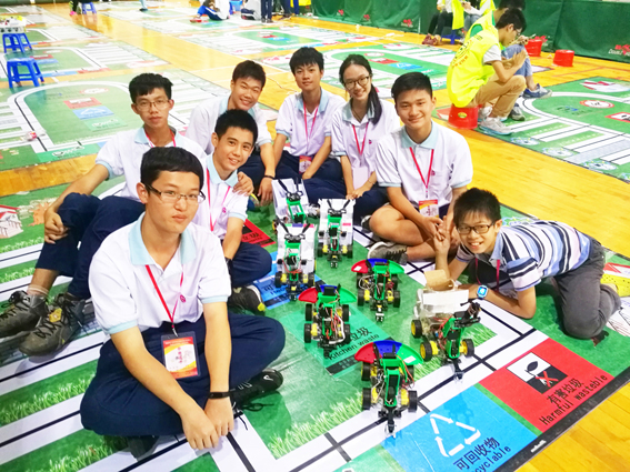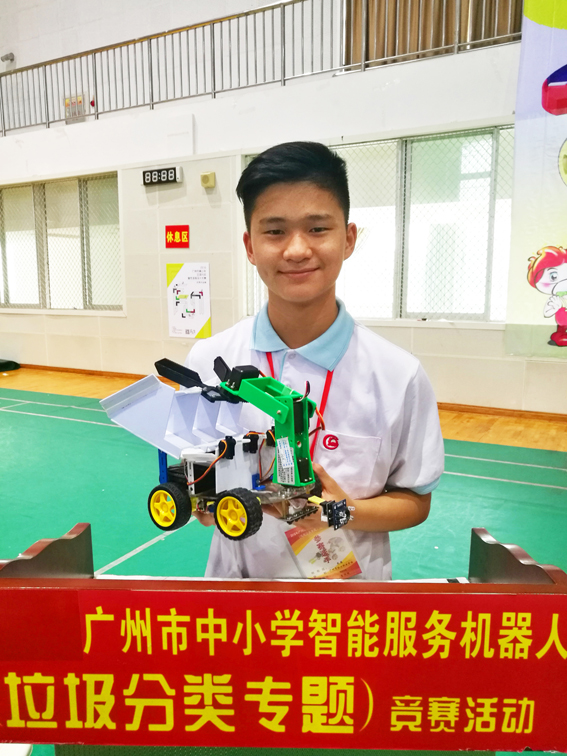 這是廣州市輕工職業(yè)學(xué)校第一次參加該項(xiàng)比賽,學(xué)校領(lǐng)導(dǎo)高度重視,精心組織,智能控制教學(xué)部師生積極備戰(zhàn),充分利用課余時(shí)間完成了機(jī)器人的設(shè)計(jì)和調(diào)試。教練團(tuán)隊(duì)中有兩位老師還在2016年暑假參加了清華大學(xué)為我校智能制造專(zhuān)業(yè)教師開(kāi)設(shè)的機(jī)器人競(jìng)技與創(chuàng)客教育挑戰(zhàn)式項(xiàng)目高級(jí)研修班,獲得極高評(píng)價(jià)。在此次賽事的備戰(zhàn)中,他們利用創(chuàng)新理念,帶領(lǐng)整個(gè)學(xué)生團(tuán)隊(duì)以頭腦風(fēng)暴的方式不斷突破創(chuàng)新,大膽設(shè)想,小心求證,順利完成了垃圾分類(lèi)機(jī)器人的程序優(yōu)化和創(chuàng)意垃圾桶的設(shè)計(jì)。