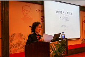 接著,文化部非遺保護(hù)專家委員會(huì)專家、中國(guó)藝術(shù)研究院研究員李榮啟做題為《非物質(zhì)文化遺產(chǎn)的教育傳承》專題講座,主要闡述非遺傳承與教育傳承的意義與現(xiàn)狀、非遺傳承與教育傳承的存在問題、如何進(jìn)行非遺教育傳承思考與對(duì)策等三個(gè)方面。兩位專家的講座旨在喚醒大家對(duì)非物質(zhì)文化遺產(chǎn)的認(rèn)同感和自豪感,自覺保護(hù)和傳承非遺,確保非遺的生命力,讓非遺在傳承中延續(xù),活在當(dāng)代,活在未來。