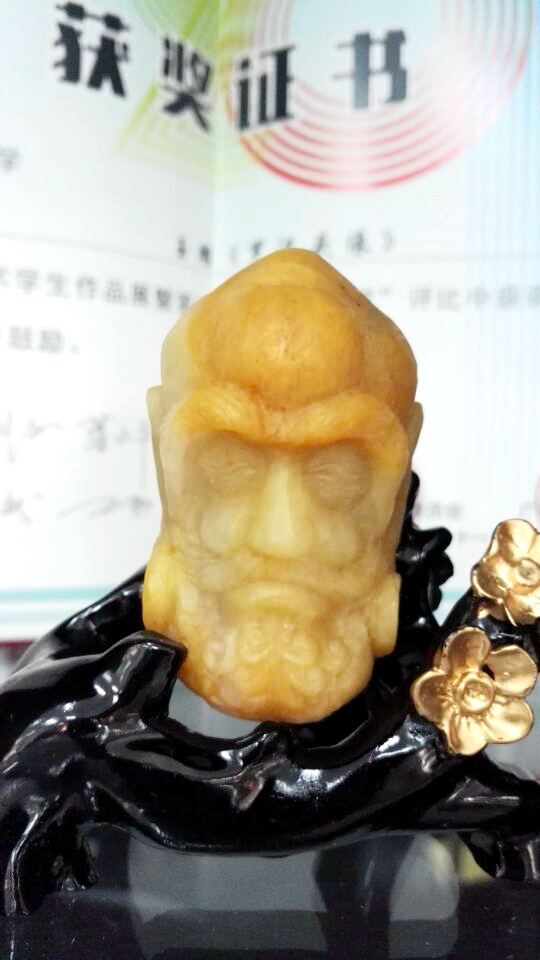 14級玉雕專業(yè)梁譽豪的《羅漢頭像》獲得銀獎;