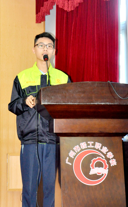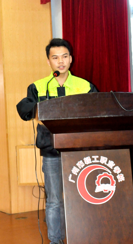 儀式還對在2016年廣州市中職學(xué)生技能競賽中取得了優(yōu)異成績的數(shù)控精英進(jìn)行了頒獎。其中數(shù)控車項(xiàng)目第一名獲得者劉海祥同學(xué)向大家分享了備賽過程的苦與樂。