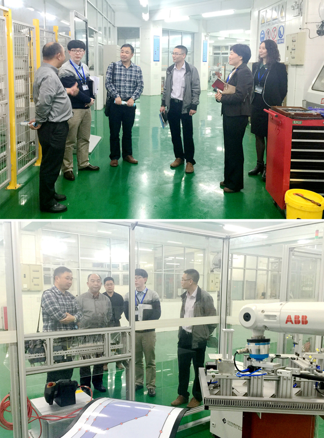 在校領(lǐng)導(dǎo)陪同下,江門一職的領(lǐng)導(dǎo)參觀了機器人實訓室,對智能機器人專業(yè)的發(fā)展前景、專業(yè)建設(shè)等情況進行了深入調(diào)研。
