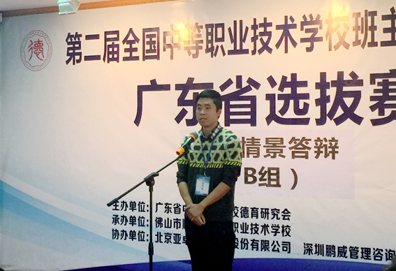 廣東省中等職業(yè)學(xué)校德育研究會(huì)主辦的第二屆全國(guó)中等職業(yè)學(xué)校班主任基本功大賽廣東省選拔賽2017年2月17日—19日如期舉行。廣州市輕工職業(yè)學(xué)校選派周冬亮老師參加比賽。