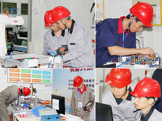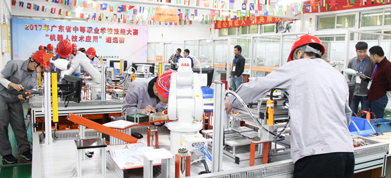 廣州市輕工職業(yè)學(xué)校于2014年開(kāi)設(shè)機(jī)器人應(yīng)用與維護(hù)專業(yè),是廣州市第一所開(kāi)設(shè)該專業(yè)的中職學(xué)校。學(xué)校十分重視本專業(yè)人才培養(yǎng)的針對(duì)性和前沿性,緊跟現(xiàn)代科技應(yīng)用的時(shí)代步伐,與廣州數(shù)控設(shè)備有限公司等大型企業(yè)建立了機(jī)器人專業(yè)現(xiàn)代學(xué)徒制培養(yǎng)基地,與北京華航唯實(shí)機(jī)器人科技有限公司建立了“產(chǎn)學(xué)研”戰(zhàn)略合作,為廣州地區(qū)及珠三角地區(qū)機(jī)器人應(yīng)用與維護(hù)崗位培養(yǎng)了首批人才,并獲批為國(guó)家教育部“工業(yè)機(jī)器人應(yīng)用人才培養(yǎng)中心”。為協(xié)辦好本次大賽,我?朔щy,積極籌備,在廣州市教育局各級(jí)領(lǐng)導(dǎo)的大力支持下,高規(guī)格﹑高標(biāo)準(zhǔn)地完成了新設(shè)備的購(gòu)置、安裝與調(diào)試、競(jìng)賽場(chǎng)地布置等工作,確保了本次賽事如期順利舉行,得到了主辦方和參賽學(xué)校的高度認(rèn)可。