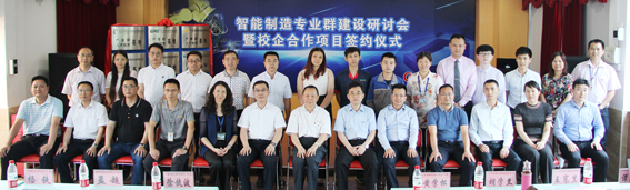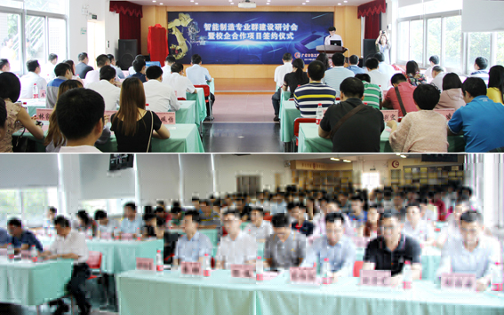 廣州市智能制造專業(yè)群建設研討會暨校企合作項目簽約儀式于5月10日在廣州市輕工職業(yè)學校隆重舉行,在廣州市教育局職成處處長黃學松與各方專家及企業(yè)嘉賓的見證下,校方與巨輪智能股份有限公司、廣東省機械研究所、廣州達意隆包裝機械股份有限公司、廣州市蘊泰精密機械有限公司、廣州隆邦自動化控制設備有限公司、廣州勁云電子科技有限公司等六家企業(yè)通過雙方協商,達成校企合作意愿,簽訂校企合作協議,并舉行揭牌儀式。