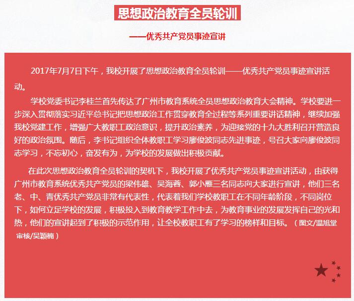 廣州市建筑工程職業(yè)學(xué)校思想政治教育全員輪訓(xùn)——優(yōu)秀共產(chǎn)黨員事跡宣講