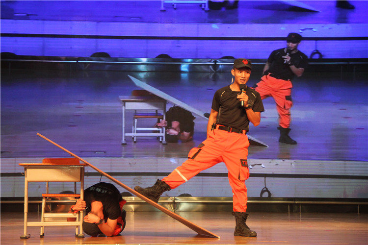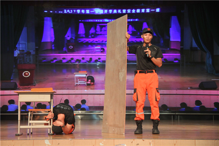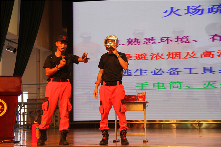 黃磊教練曾服役于中國武警部隊(duì),現(xiàn)為天廷救援隊(duì)高級(jí)教練;曾多次參加國際及國內(nèi)救援工作,有著豐富的實(shí)戰(zhàn)經(jīng)驗(yàn)。他緊緊圍繞防“自然災(zāi)害及逃生自救”、“消防知識(shí)”、“防溺水”、“交通安全”、“防校園意外”等內(nèi)容,利用專業(yè)工具及模擬災(zāi)難現(xiàn)場(chǎng)時(shí)可應(yīng)急選用的輔助手段對(duì)學(xué)生進(jìn)行災(zāi)難逃生教育,生動(dòng)詳實(shí)地講解了當(dāng)發(fā)生了災(zāi)害,該如何應(yīng)對(duì)又如何逃生。學(xué)生上臺(tái)親身防火自救時(shí),防毒面具的正確使用,豐富的安全知識(shí)大餐,讓同學(xué)們牢固樹立安全防范意識(shí),增強(qiáng)應(yīng)急自救能力,著力構(gòu)建一個(gè)平安和諧校園。
