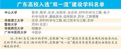 中山大學(xué)、華南理工大學(xué)、暨南大學(xué)、華南師范大學(xué)和廣州中醫(yī)藥大學(xué)的18個(gè)學(xué)科入選一流學(xué)科建設(shè)名單。