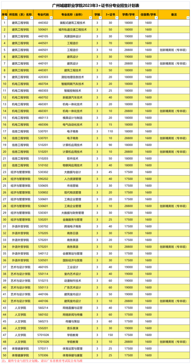 廣州城建職業(yè)學院春季高考2023年招生計劃重磅出爐