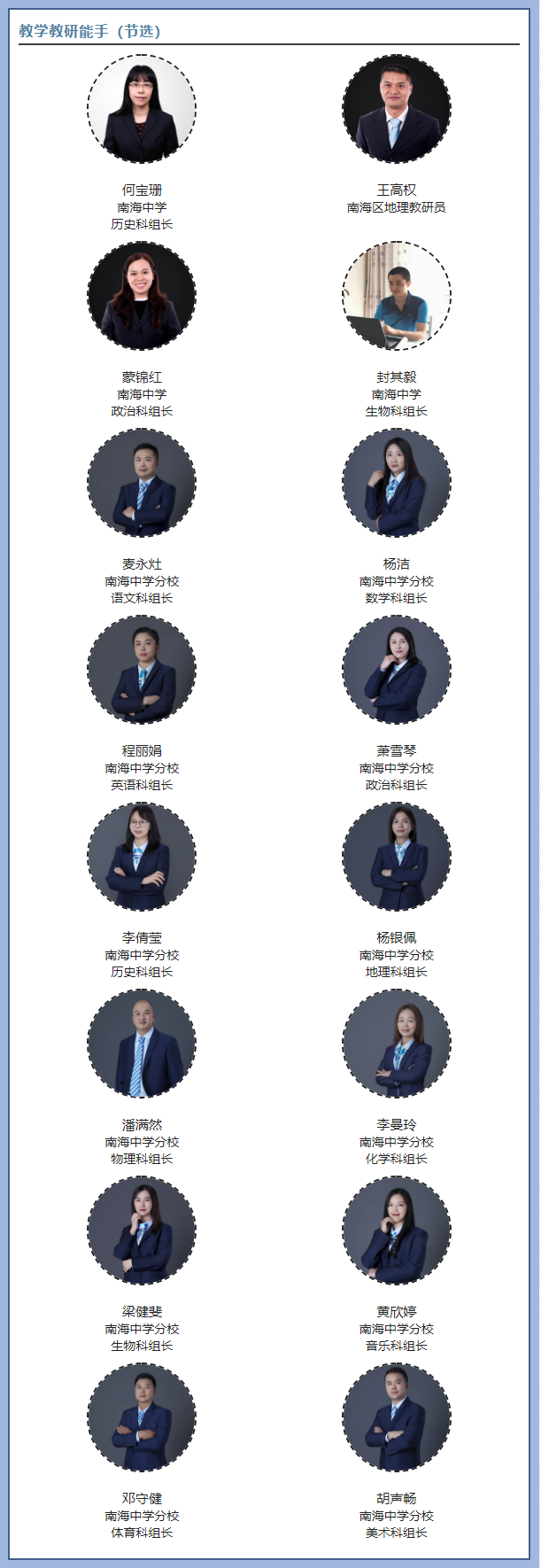 以下選節(jié)的是曾在南海中學(xué)分校工作過(guò)的現(xiàn)任本部、分校的行政干部、級(jí)組長(zhǎng)或教學(xué)教研能手。