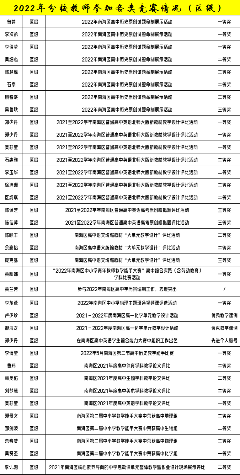 此外,老師們?cè)谑 ⑹、區(qū)級(jí)各類比賽中成績(jī)突出,取得了顯著的教研教學(xué)成果。