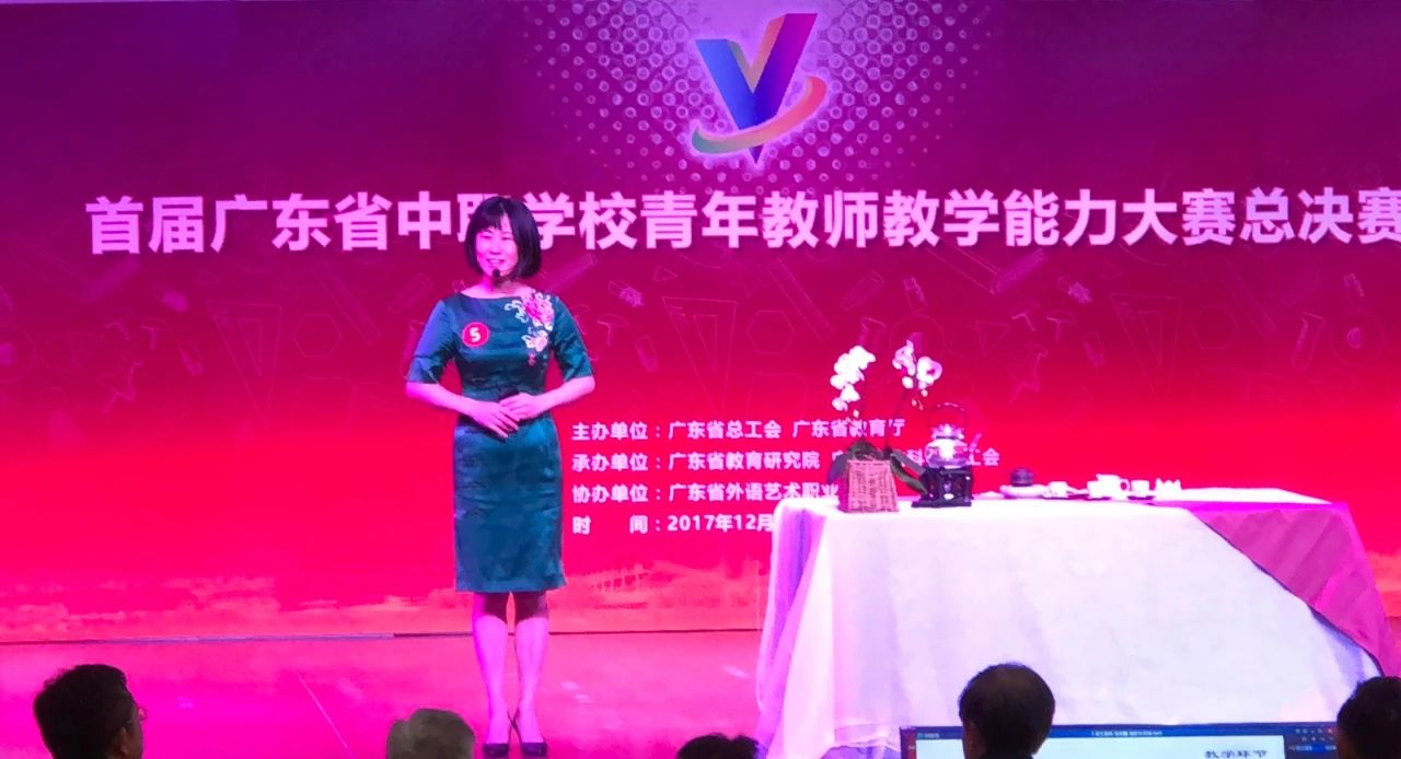 張君娜老師以小組第一名的優(yōu)異成績榮獲廣東省首屆青年教師教學(xué)能力大賽總決賽一等獎